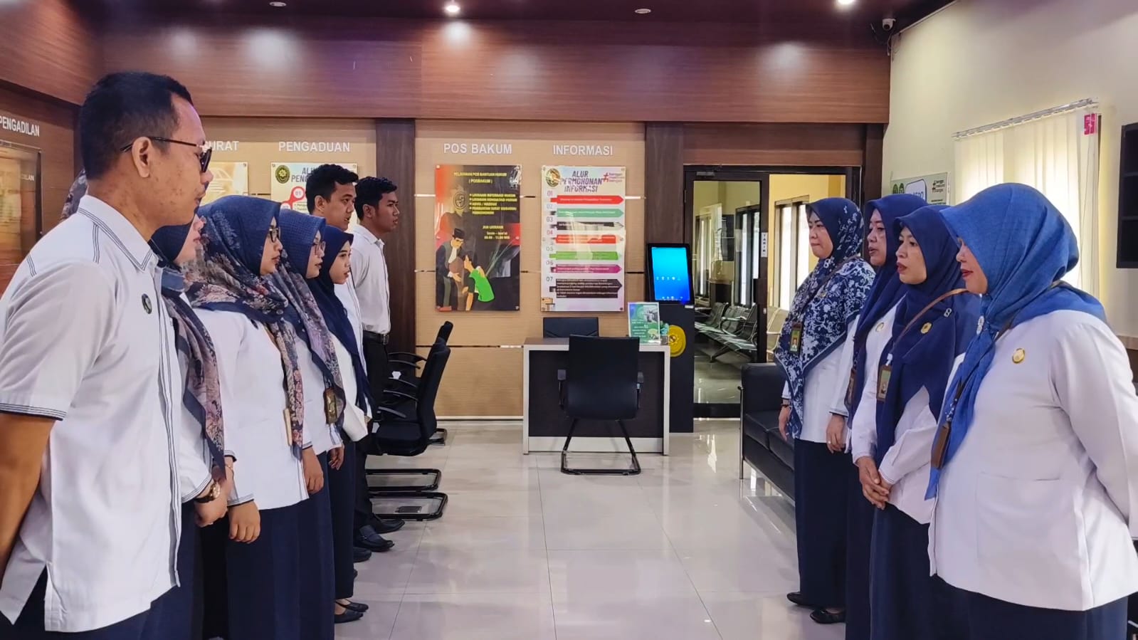 Bertempat di Ruang Apel PA Tanjung Karang Seluruh aparatur Pengadilan Agama Tanjungkarang melaksanakan apel pagi pukul 7.57. Pembina Apel kali ini adalah Panitera Pengadilan Agama Tanjung Karang, Muhammad Iqbal, S.Ag., S.H., M.H. Beliau menyampaikan bahwa minggu kemarin telah dilaksanakan pengawasan, maka diharapkan untuk ditindaklanjuti dan diupload pada e-Binwas dan terus memantau hasil penilaian triwulan badilag.