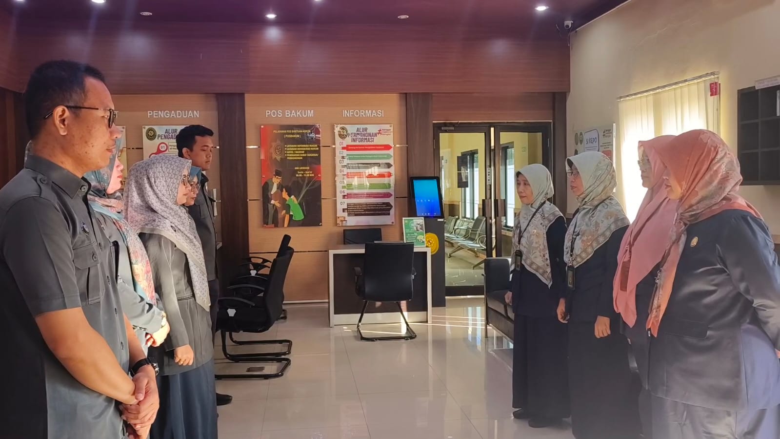 Dalam upaya meningkatkan kualitas pelayanan kepada masyarakat, khususnya para pencari keadilan, petugas Pelayanan Terpadu Satu Pintu (PTSP) mengikuti kegiatan briefing oleh Manager on Duty yang didampingi oleh Panitera Muda pada ruang pelayanan pukul 08.00.