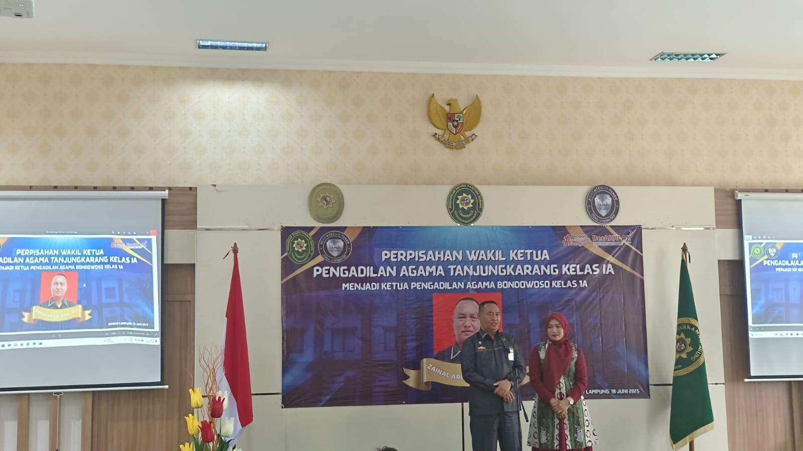 Pengadilan Agama Tanjungkarang menggelar acara perpisahan untuk Wakil Ketua, Bapak Zainal Arifin, S.Ag., M.H., yang mendapatkan promosi menjadi Ketua Pengadilan Agama Bondowoso Kelas IA. Acara berlangsung khidmat dan penuh kehangatan di aula Pengadilan Agama Tanjungkarang.