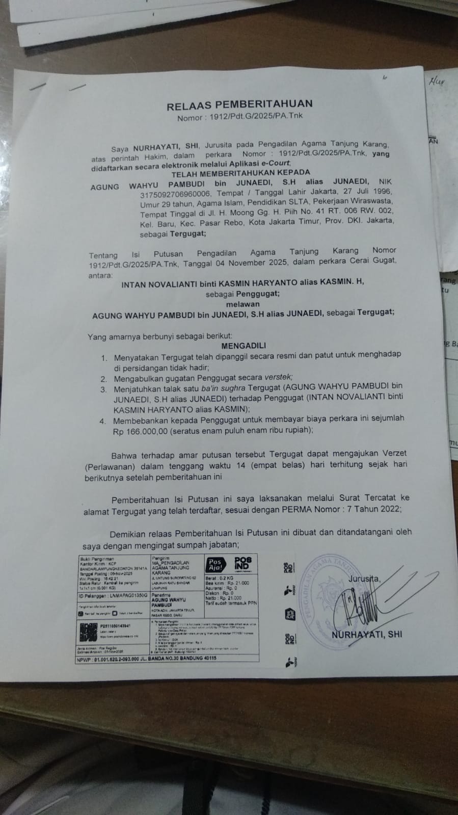 PEMBERITAHUAN Nomor perkara 1912/Pdt.G/2025/PA.Tnk Ditulis oleh Redaksi on 17 November 2025. Ditulis oleh Redaksi on 17 November 2025. Dilihat: 14