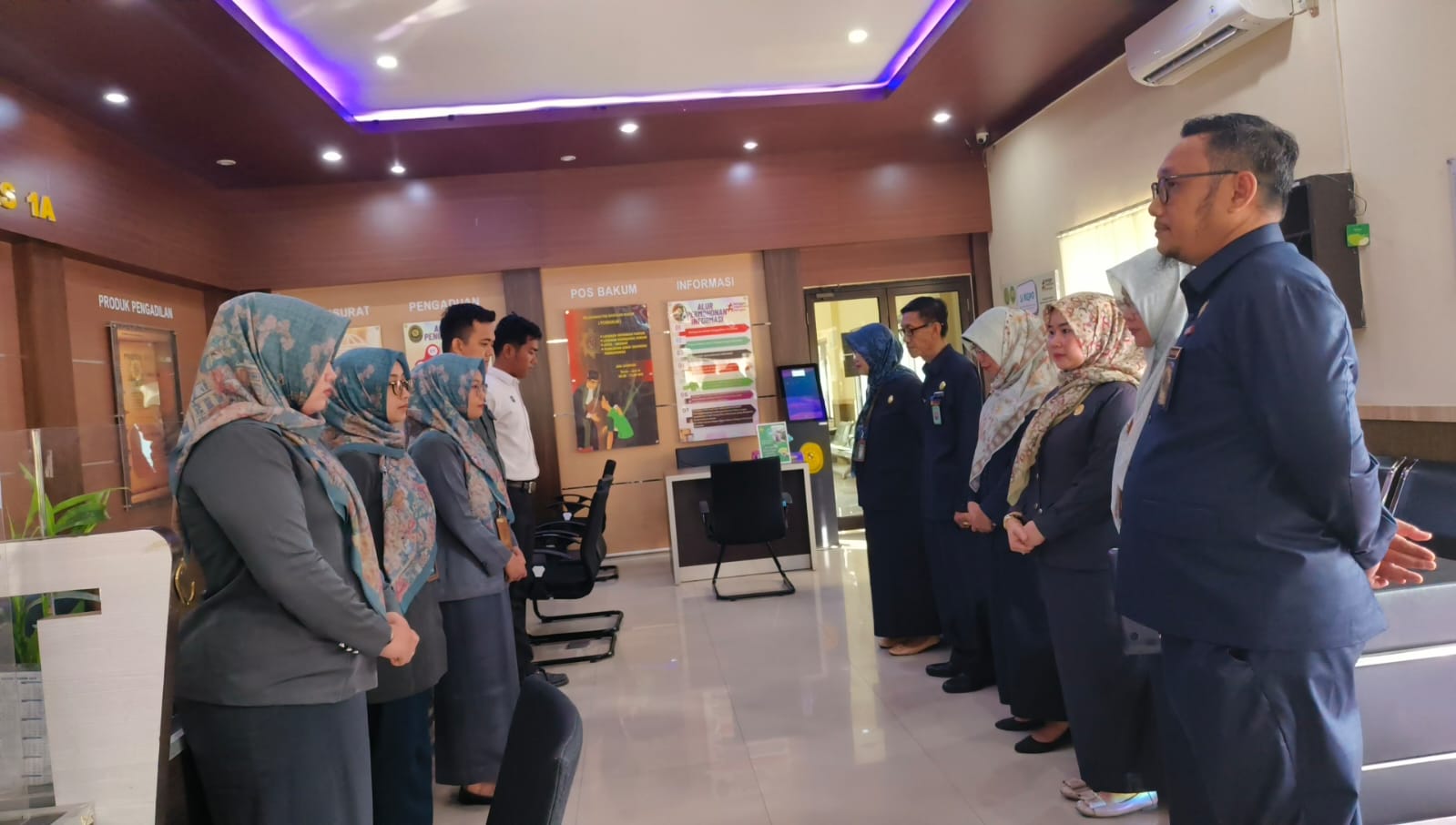 Manager on Duty melaksanakan briefing petugas PTSP sebagai persiapan mengawali aktivitas pasca libur Idul Fitri. Manager on Duty hari ini adalah Hj. Elok Diantina, S.H., M.H. Ketua, Panitera, dan Panitera Muda turut hadir dalam briefing yang dihadiri oleh seluruh petugas PTSP.