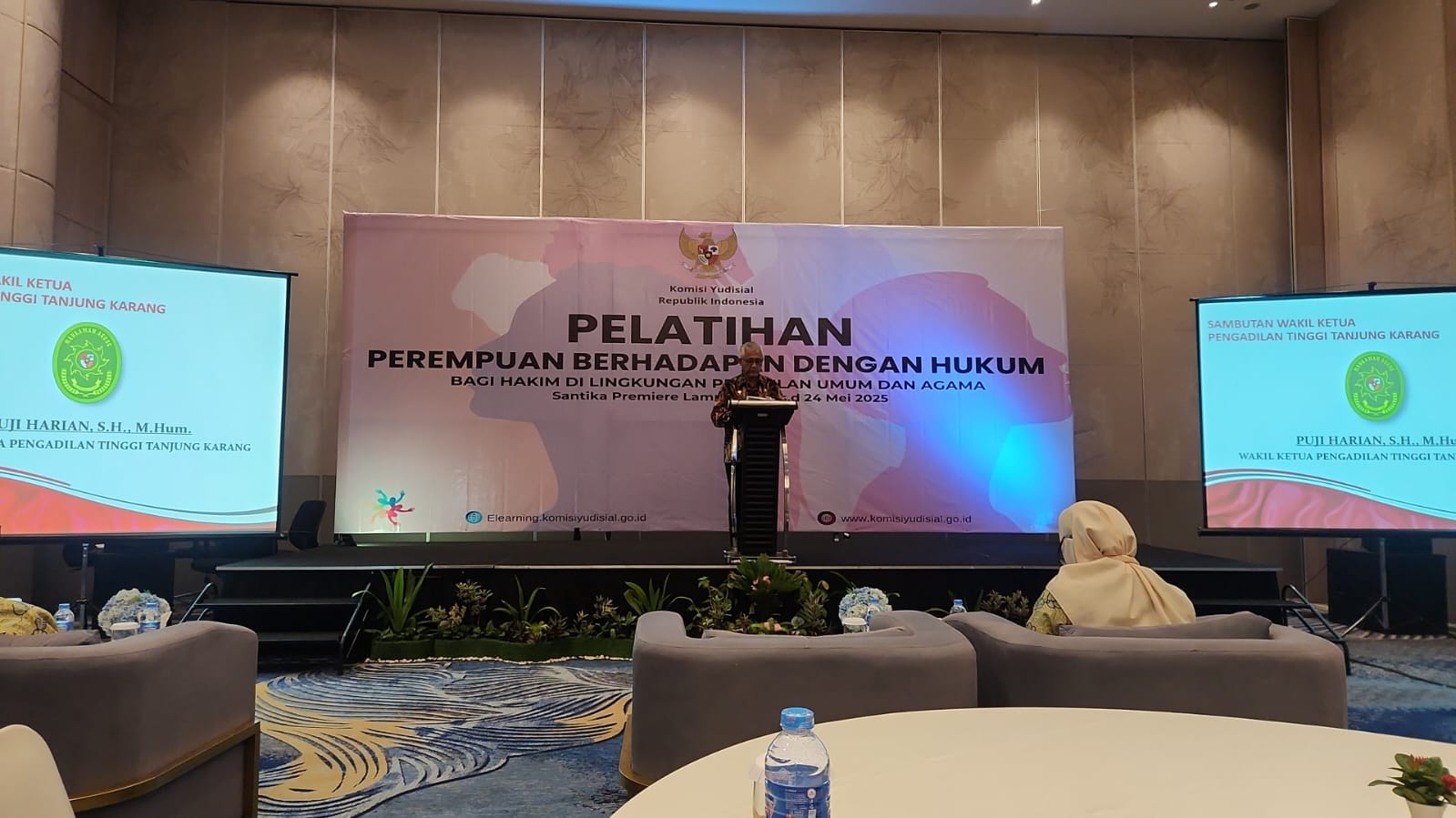 PA Tanjungkarang โ€” Ketua Pengadilan Agama Tanjungkarang turut serta dalam pelatihan tematik bertajuk โ€œPerempuan Berhadapan dengan Hukumโ€ yang diselenggarakan oleh Komisi Yudisial Republik Indonesia. Kegiatan ini berlangsung selama lima hari, mulai dari tanggal 20 hingga 24 Mei 2025, dan bertempat di Hotel Santika Premiere, Bandar Lampung.