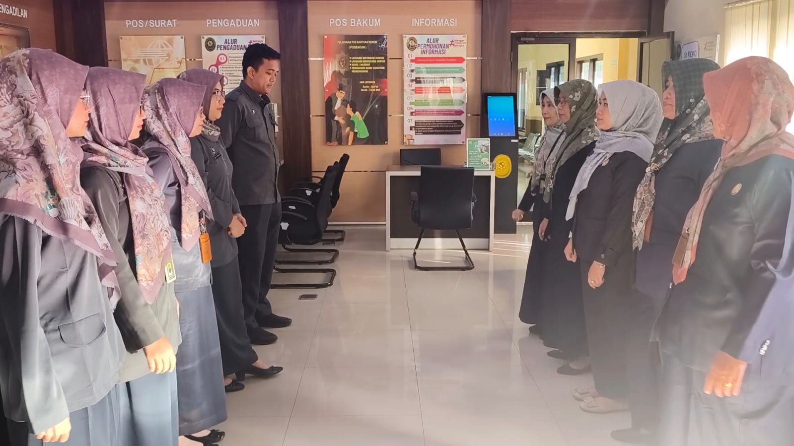 Dalam rangka melayani masyarakat secara prima pada awal bulan Juli 2025, Pengadilan Agama Tanjungkarang Kelas IA melaksanakan briefing Petugas Pelayanan Terpadu Satu Pintu (PTSP) di ruang layanan. Briefing dilaksanakan oleh Manager on Duty (MoD), Hj. Elok Diantina, S.H., M.H. dan Astri Kurniawati, S.H., M.H. pada pukul 08.00 didampingi oleh Panitera Muda Gugatan, Panitera Muda Permohonan dan Panitera Muda Hukum.
