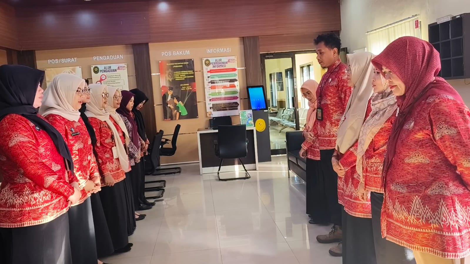 Manager on Duty (MoD) didampingi Panitera Muda memberikan briefing kepada petugas PTSP dan Posbakum yang dilaksanakan pada pukul 08.00 di ruang PTSP.