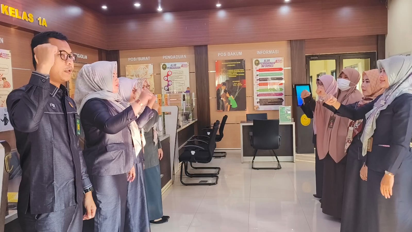 Manager on Duty (MoD) bersama dengan Panitera Muda melaksanakan briefing Petugas Pelayanan Terpadu Satu Pintu (PTSP) di ruang PTSP pukul 08.00. Kegiatan briefing dilaksanakan dalam rangka meningkatkan pelayanan pada Pengadilan Agama (PA) Tanjungkarang.