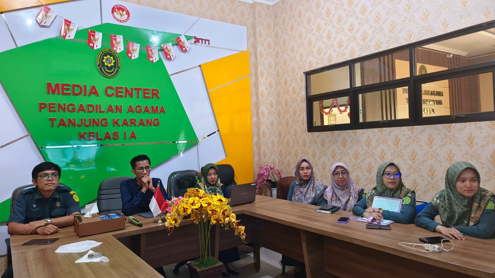Sekretaris, Kasubag Umum dan Keuangan, serta Analis SDM dan PPNPN yang akan dilantik PPPK Pengadilan Agama Tanjungkarang mengikuti Sosialisasi PPPK di Lingkungan Mahkamah Agung Republik Indonesia. Kegiatan ini dilaksanakan secara virtual melalui Media Center PA Tanjungkarang mulai pukul 09.30 WIB.