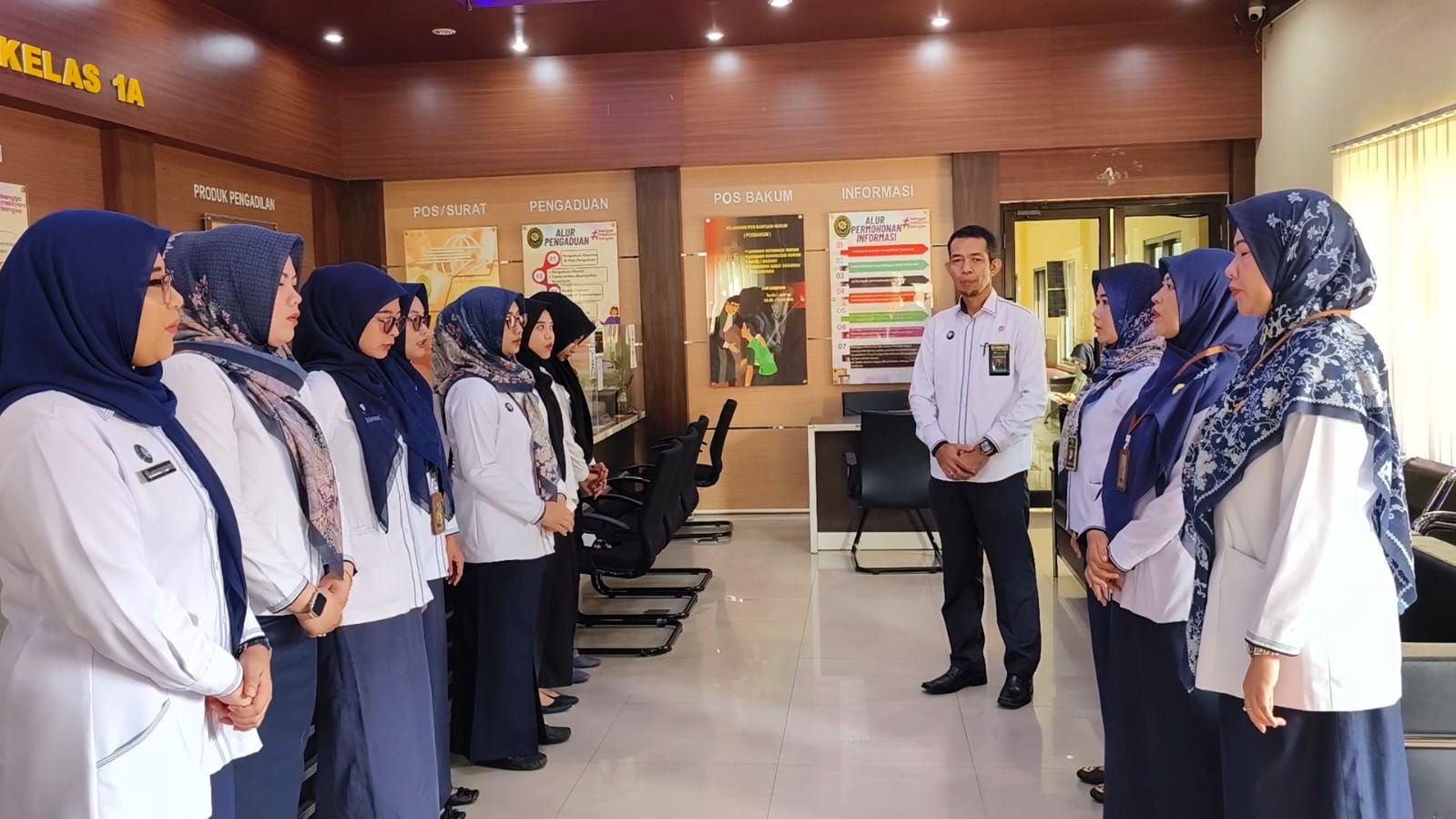 PA Tanjungkarang β Pengadilan Agama Tanjungkarnag melaksanakan Briefing petugas PTSP usai pelaksanaan apel pagi yang bertempat di Ruang Pelayanan Terpadu Satu Pintu. Briefing dipimpin oleh Panitera, Panitera Muda, serta Manager on Duty (MoD) hari ini, Fitri Chindithia Syarief, S.H.I., M.H. dan Anika Rahmah, S.Ag..