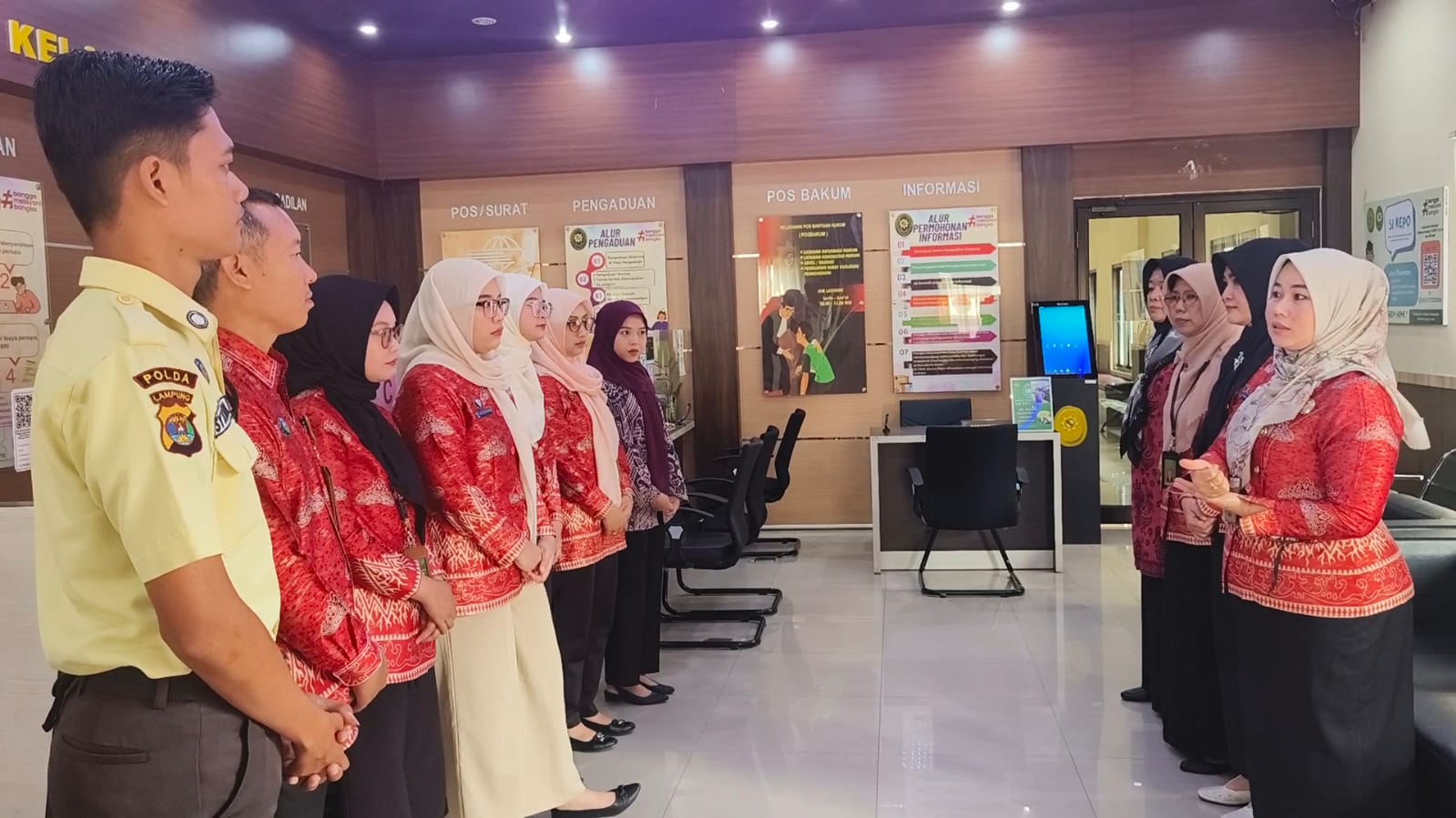 Bertempat di ruang PTSP Pengadilan Agama Tanjungkarang pada pukul 08.00, Panitera Muda bersama Manager on Duty (MoD) melaksanakan briefing kepada seluruh petugas pelayanan.