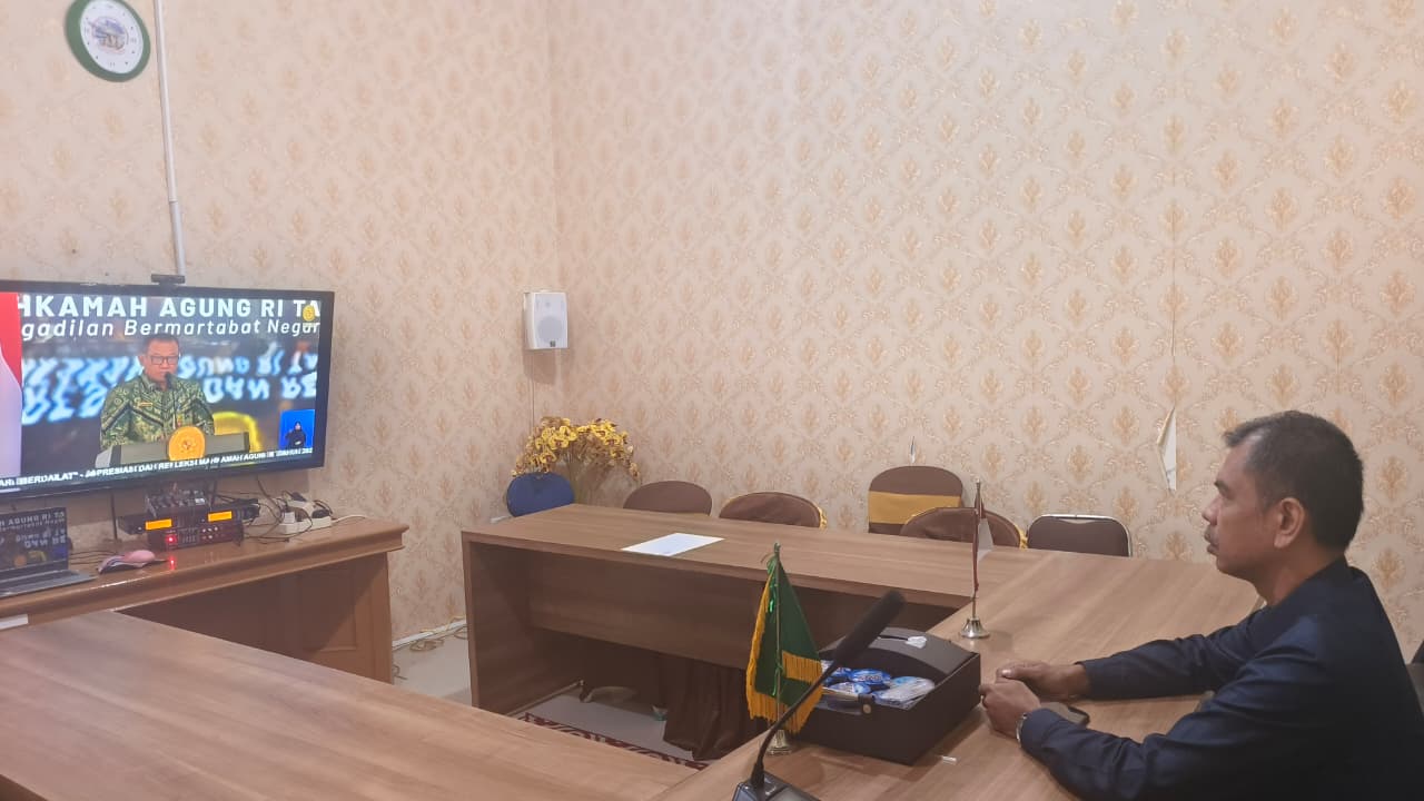 Wakil Ketua Pengadilan Agama Tanjungkarang, Elmishbah Ase, S.H.I., M.H. mengikuti kegiatan Apresiasi dan Refleksi Akhir Tahun Mahkamah Agung Republik Indonesia Tahun 2025 yang diselenggarakan secara nasional di Media Center pukul 08.30.