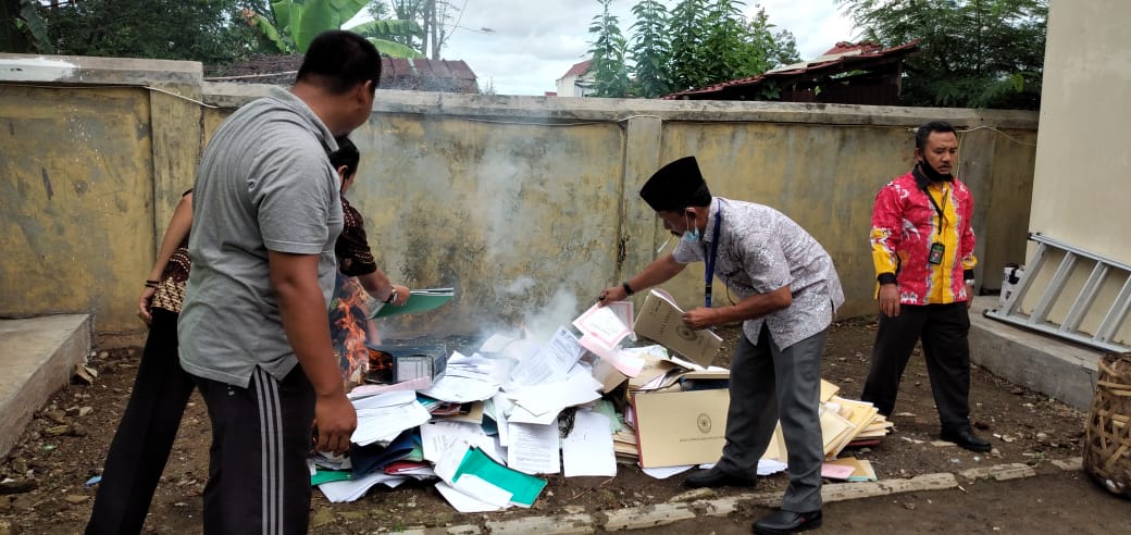Tata cara Pemusnahan buku register perkara, buku keuangan perkara dan Blanko Akta Cerai dengan memperhatikan Peraturan Menteri Keuangan RI Nomor 83/PMK.06/2016 tentang tata cara pelaksanaan Pemusnahan dan Penghapusan Barang Milik Negara. Pelaksanaan Pemusnahan ini telah tercatat dalam Berita Acara Pemusnahan Register dan Blanko Akta Cerai dengan total keseluruhan Blanko yang dihapuskan dan dimusnahkan berjumlah 3454 Blanko.